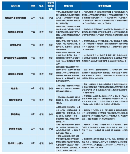 以上就是“2025年重庆市聚英技工学校招生专业有哪些”的全部内容,中职中专生如想了解更多关于重庆中专学校招生简章、招生计划、招生专业、中专技校、政策公告及招生问答等内容,敬请关注重庆中职网!